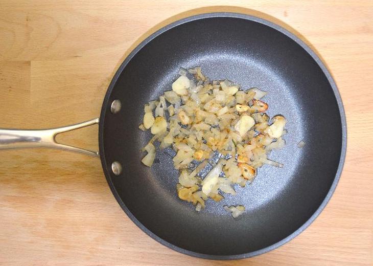 In a large pan, heat 1 tablespoon of olive oil per person over medium heat. Add the finely chopped brown onion and sliced garlic, sautΓ©ing until they begin to soften.