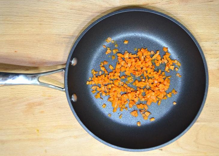 Heat 1/2 of the remaining olive oil in a frying pan over medium-low heat. Add the carrot, and cook, stirring often.