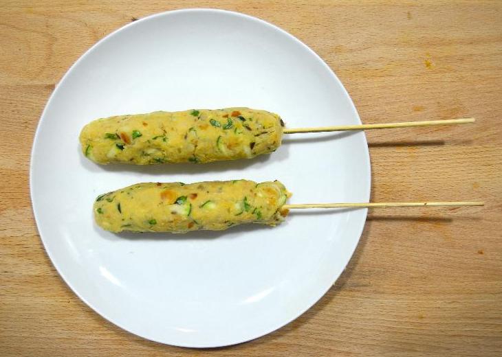 Add the ginger, half of the mint, onion, garlic and zucchini to the chickpea mixture and thoroughly combine.