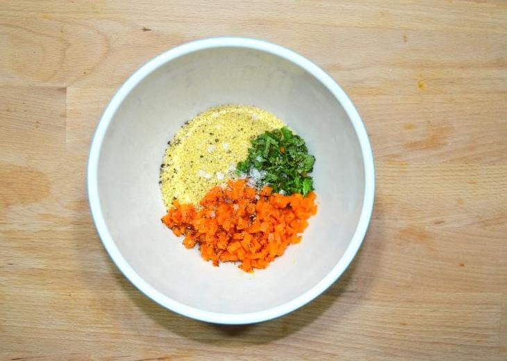 Add the lemon juice, cooked carrot, remaining fresh mint with the couscous in a bowl.
