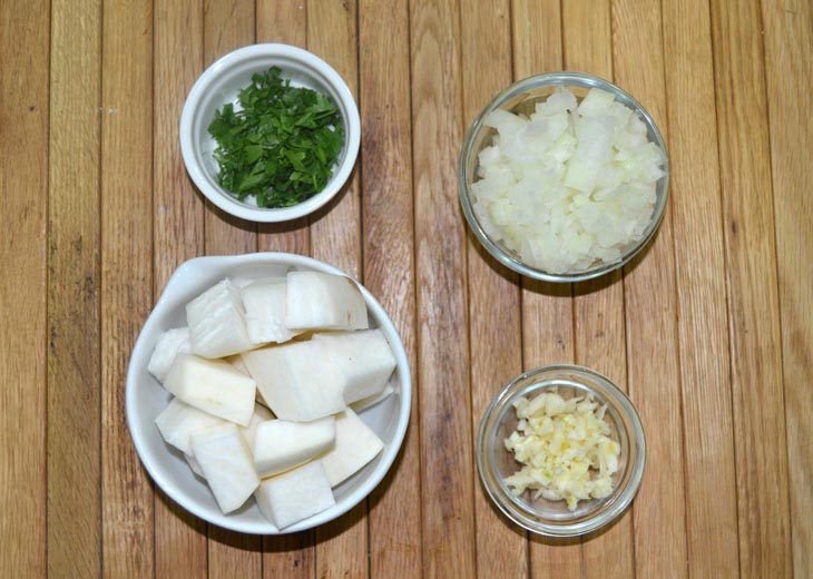 To serve, distribute the turnip mash among your serving bowls. Once the meatballs are cooked through, carefully remove them from the oven and add them to the serving bowls alongside the turnip mash.