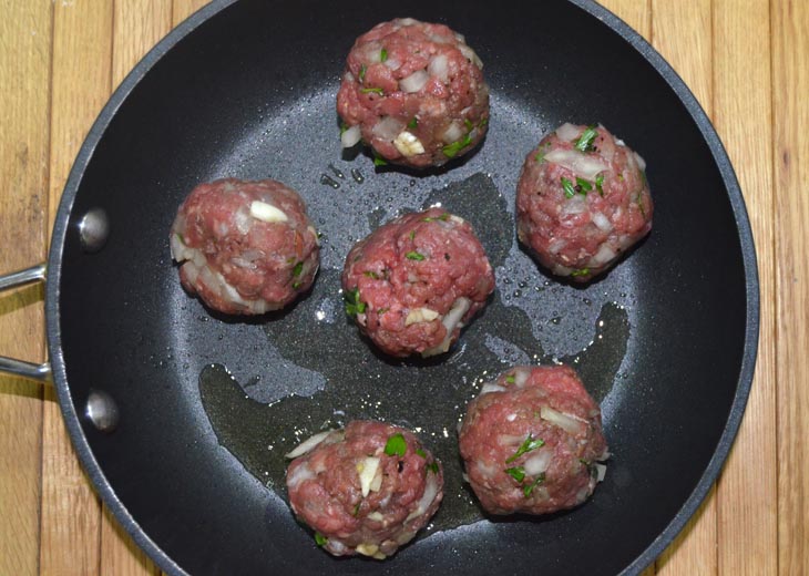 In the frying pan, add the meatballs and fry until they are browned on the outside.