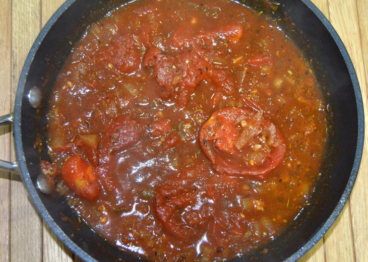 In the saucepan with the onion and garlic, add the stewed tomato and beef stock, and bring this mixture to a gentle boil. Lower the heat to a gentle simmer and add the dried oregano, smoked paprika, remaining Worcestershire sauce, and harissa paste (omit if you do not like spice).